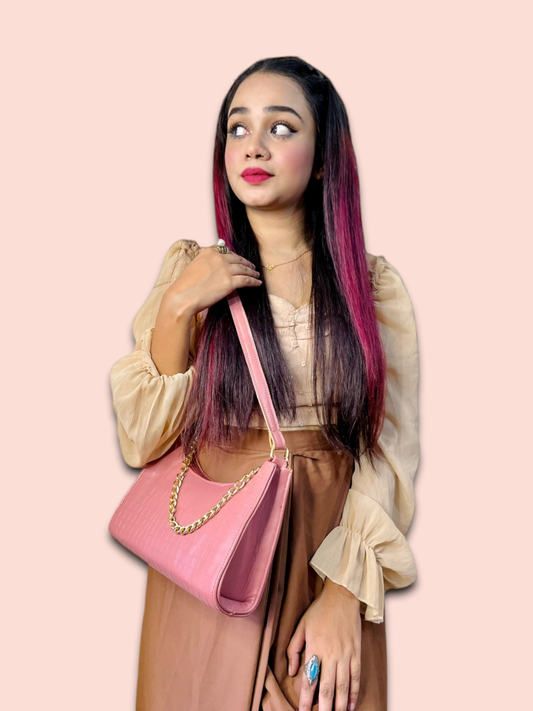 Chic Crocodile-Texture Shoulder Bag with Gold Chain